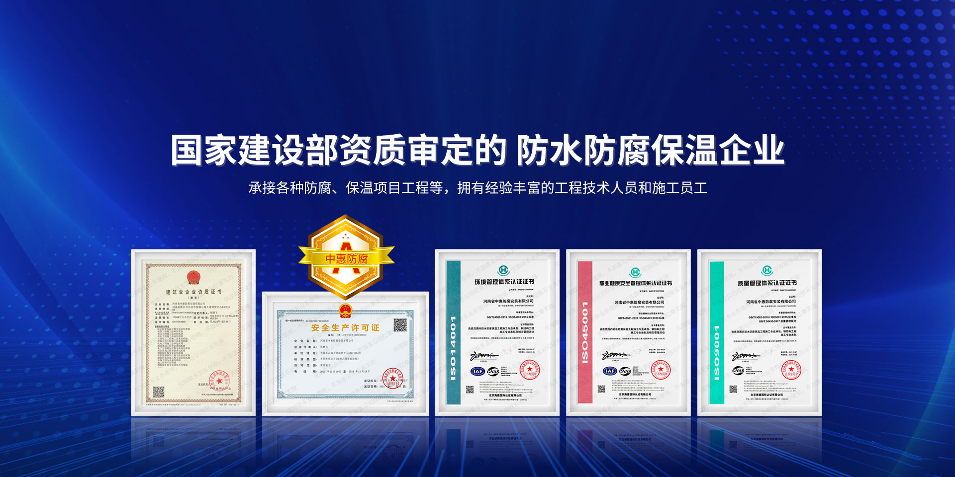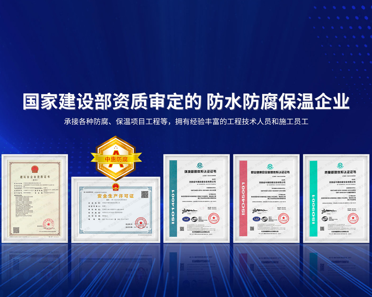 公司經營范圍:防水防腐保溫工程;消防設施工程;建筑裝修裝飾工程;建筑機電安裝工程;電力工程;建筑工程;石油化工工程;工業清洗工程;油罐清洗工程;鋼結構工程;環保工程;模板腳手架工程;電纜防火封堵、防污閃噴涂、外墻外保溫工程;各類施工勞務作業;設備維修、船舶鉚焊、涂裝;電力工程材料、建材、防水材料、防火材料、防腐保溫材料銷售,并相繼通過了GB/T19001-2008idtISO9001:2008GB/T50430-2007質量管理體系認證證書。GB/T24001-2004idtISO14001:2004環境管理體系認證證書。GB/T28001-2011idtOHSAS18001:2007職業健康安全管理體系認證證書。公司是中國防腐蝕于防護協會、中國施工企業管理協會、電力協會和中國鋼結構防水協會會員單位。 公司的經營業務涵蓋了石油、化工、電力、冶金、煤炭、船舶、國防、燃氣、水利、環保、交通運輸、航空及國防軍工和輕紡市政等行業的防腐保溫絕熱設備。鋼結構安裝、防火、防水、金屬噴鍍、聚脲噴繪、陰極保護、防滲透堵漏、玻璃鋼及各種磚版材料襯里、橡膠襯里、煙氣硫和耐酸溶劑腐蝕等工程施工。公司連續十年榮獲“省市先進施工企業”“安全生產先進單位”“重合同,守信用企業”和“AA***資質企業”的稱號。2000年被命名為市級文明單位,2002年被國家工商行政管理局命名為“重合同,守信用的企業”、被中國工業防腐蝕技術協會命名為“防腐蝕企業,能源節約及環境保護領域有豐富的經驗和***的業績。工程一次交驗合格率100%。其中攀枝花鋼鐵公司煉鐵廠四號高爐及熱風爐防腐工程、上海寶鋼公司煤氣柜防腐工程、撫順石油一廠裝置防腐項目、齊魯石化公司稀烴廠高塔防腐工程、吉林化學工業公司煉油廠油罐防腐工程、天津石化熱電廠六號爐頂棚聯絡管保溫工程、大慶油田(太倉)力神泵業工程、中國化學工程第十一建設工程、中原油田勘探局工程、中國石化銷售有限公司華北分部、魯皖輸油管道工程、貴州開磷息烽合成氨工程、陜西黃陵煤化工程、中國石油天然氣西部管道塔里木輸油工程、邯鋼集團邯寶鋼鐵公司煉鐵工程、德州供電工程、吉寶(南通)船廠工程,偃師華潤熱力工程、鄭州熱力總公司。 河南省中惠防腐安裝有限公司愿以豐富的施工經驗,***的技術,***的設備,***的管理,***的服務,竭誠為國內外廣大的用戶提供***滿意、******的工程作品。 我公司愿與國內外同仁一道,團結協作,共同推進防腐蝕行業發展! 公司地址:河南省長垣縣建設路北段360號 固定電話:0373-8866488 郵編:453400 網址:http://www_zhff_com_cn.yan-sun.com